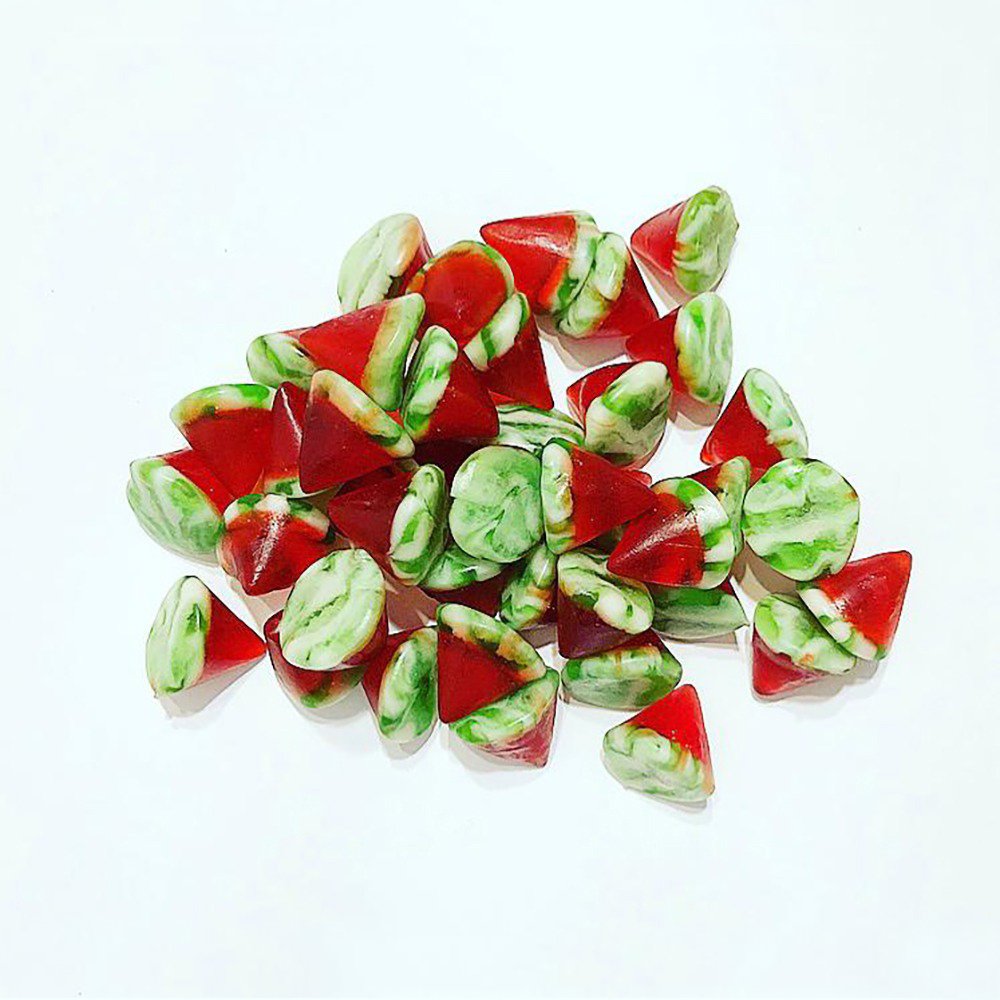 Æggeformede vingummi med frugtsmag.