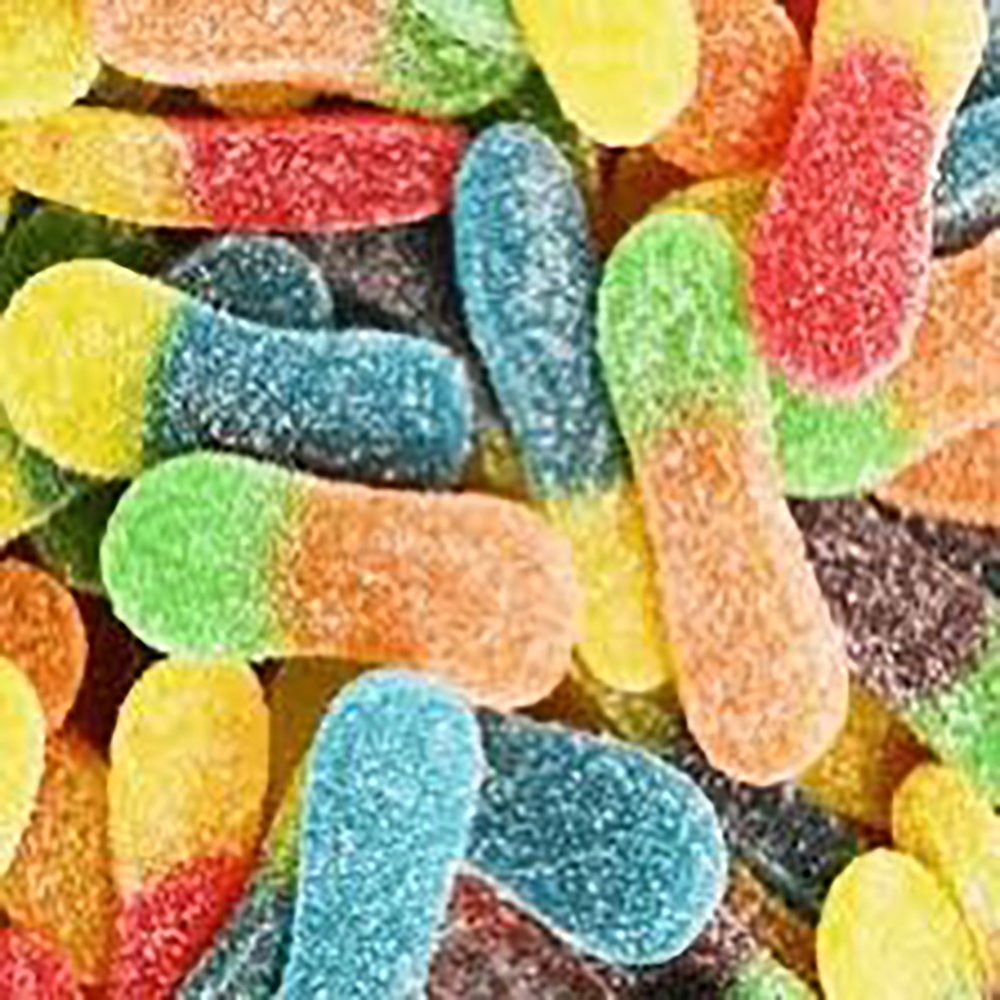 Glukosesirup, sukker, vand, oksekødsgelatine (halal), modificeret kartoffelstivelse. Surhedsregulerendemidler: E-330, E-270, belægningsmidler: vegetabilsk olie(palme) E-901, E-903. Kunstig smag, farver: E-129*, E-100, E-133. *Kan have en negativ indvirkning på børns aktivitet og koncentrationsevne.